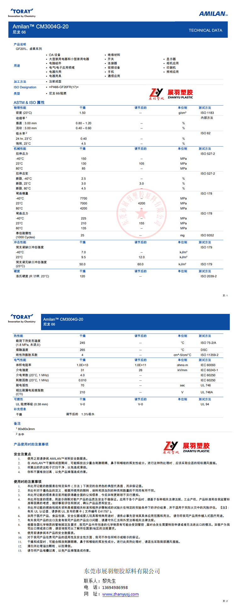 PA66 東麗 Amilan CM3004G-20 玻纖增強GF20% 鹵素阻燃 電子電器 家電應(yīng)用
