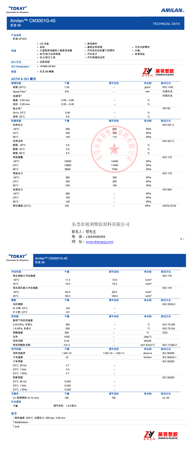 尼龍66 東麗 Amilan CM3001G45(PA66-GF45)玻纖增強(qiáng)45% 聚酰胺66