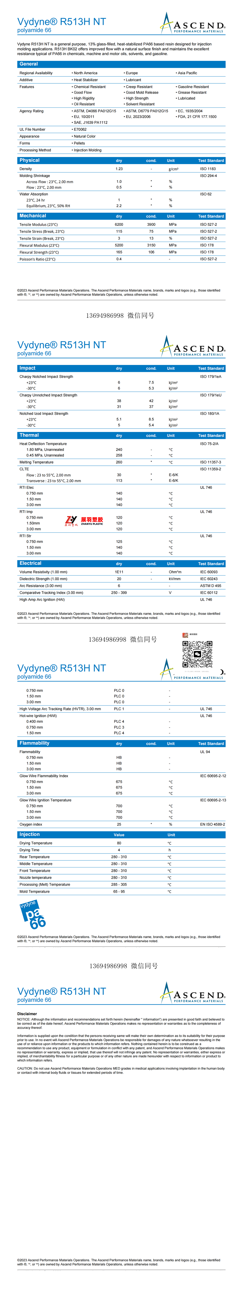 Vydyne® R513H NT(PA66-GF13)Vydyne R513H NT是一種通用型、含13%玻璃纖維、熱穩(wěn)定性的PA66基樹脂,適用于注塑成型應(yīng)用。
