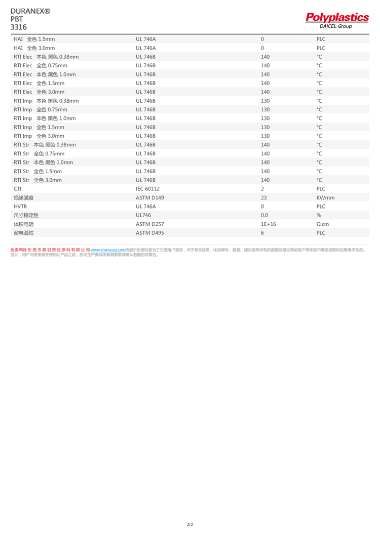 寶理 DURANEX? PBT 3316 阻燃V-0 玻纖增強(qiáng)GF30 高強(qiáng)度 高剛性 耐化學(xué)性