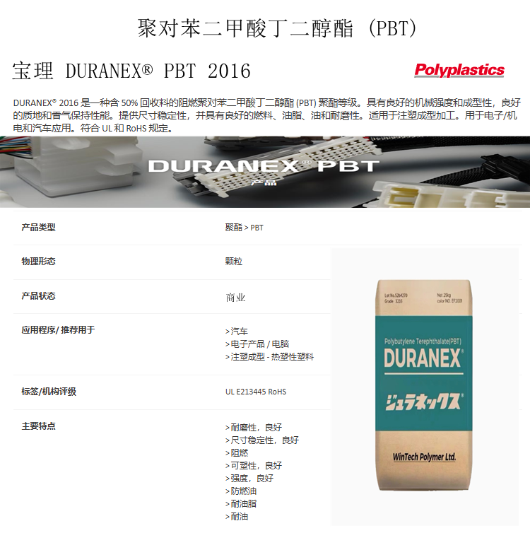 寶理 DURANEX® PBT 2016 無填充 阻燃 V-0 聚對(duì)苯二甲酸丁二醇酯
