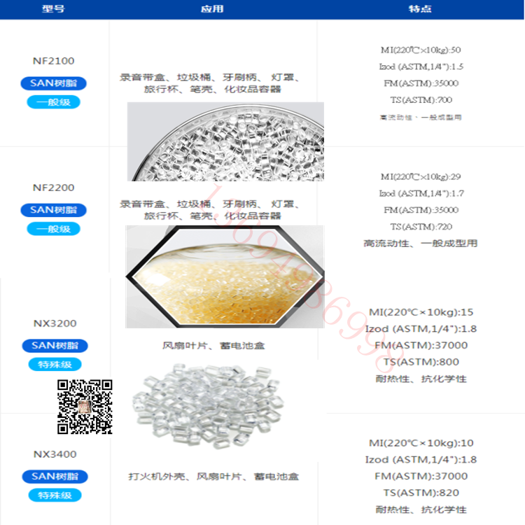 SAN樹(shù)脂NF2200臺(tái)灣臺(tái)化NF2100耐化學(xué)性NX3400的選材區(qū)別