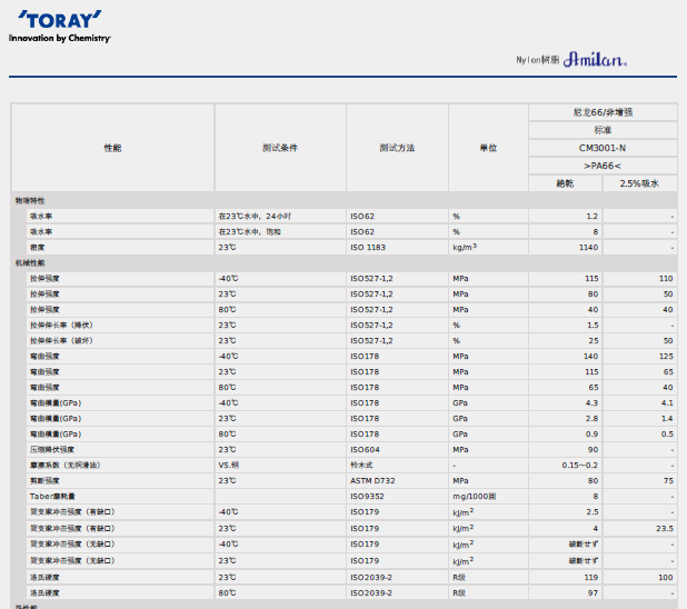 AMILAN日本東麗PA66 CM3001-N物性表圖片